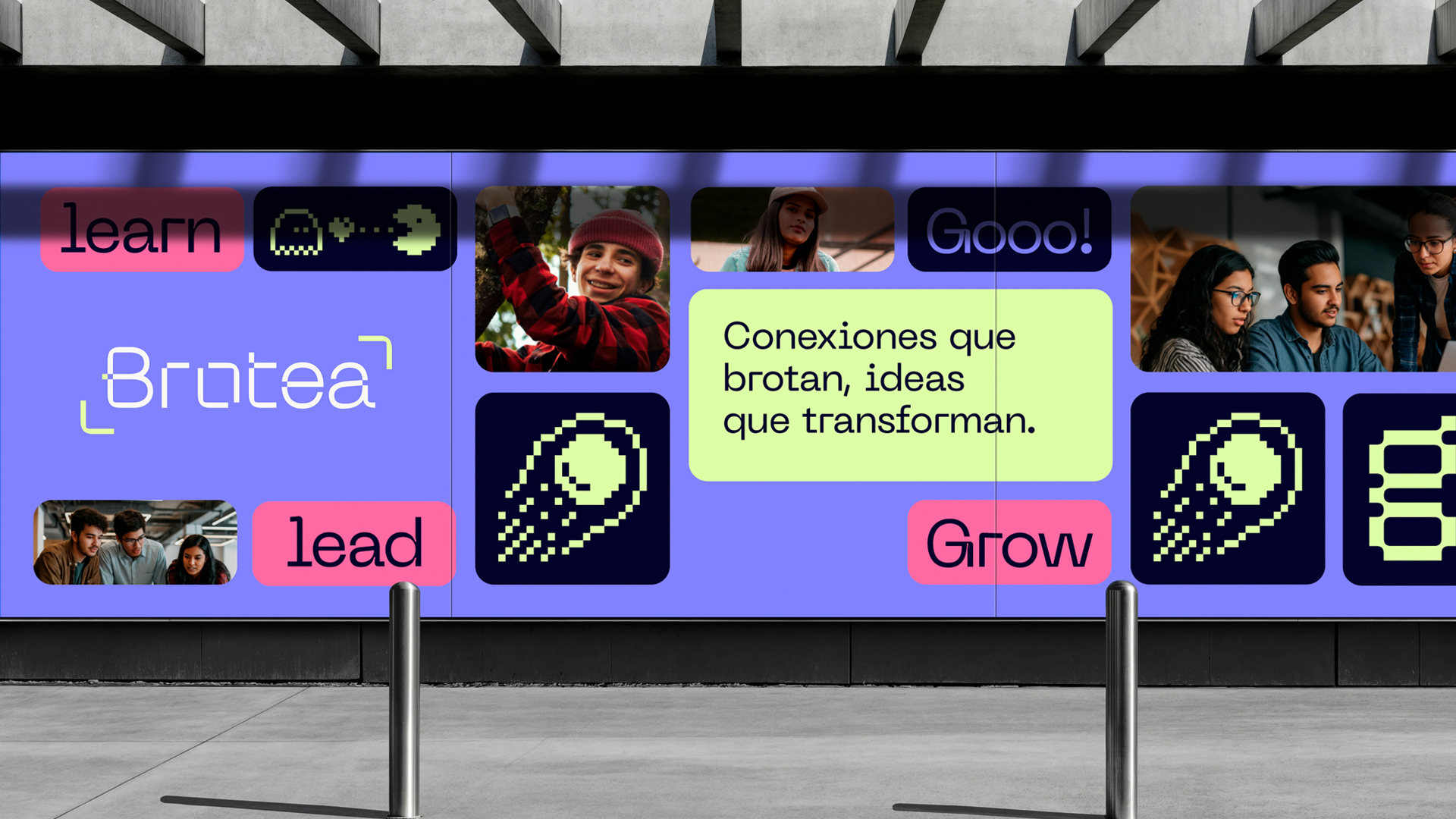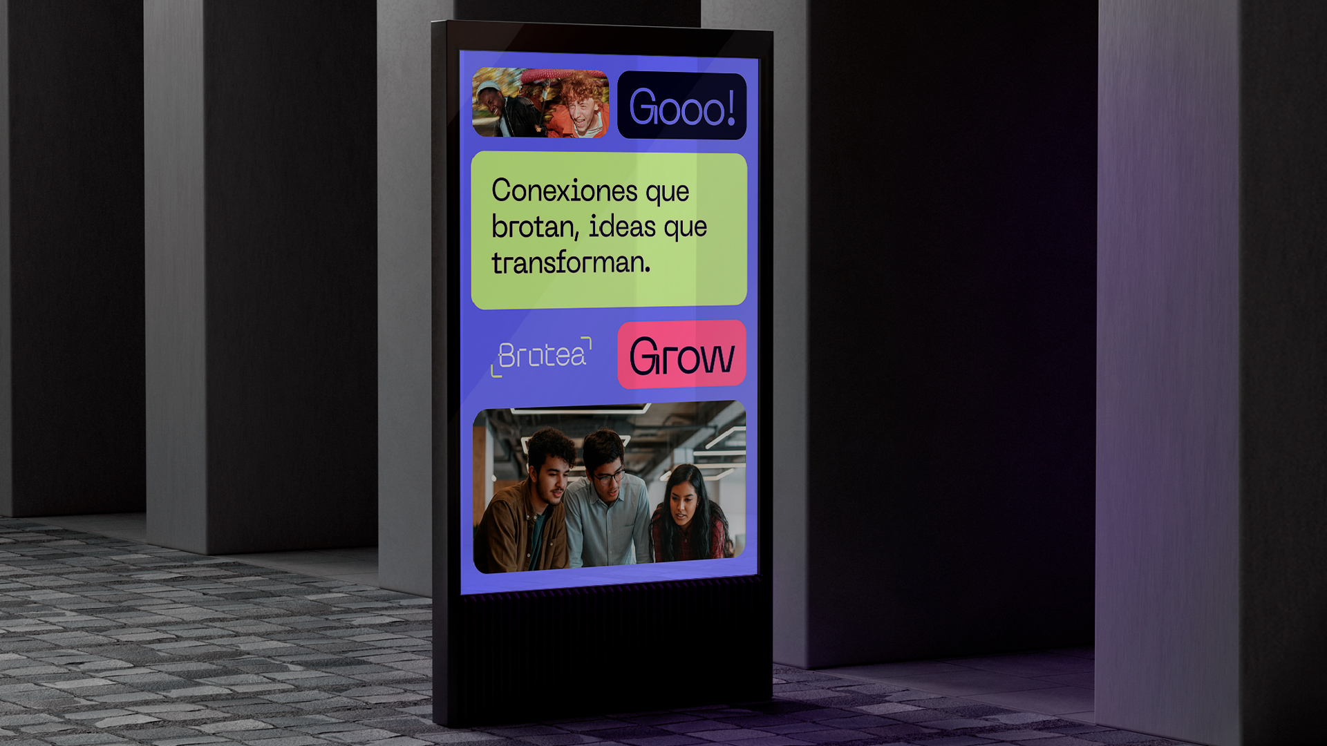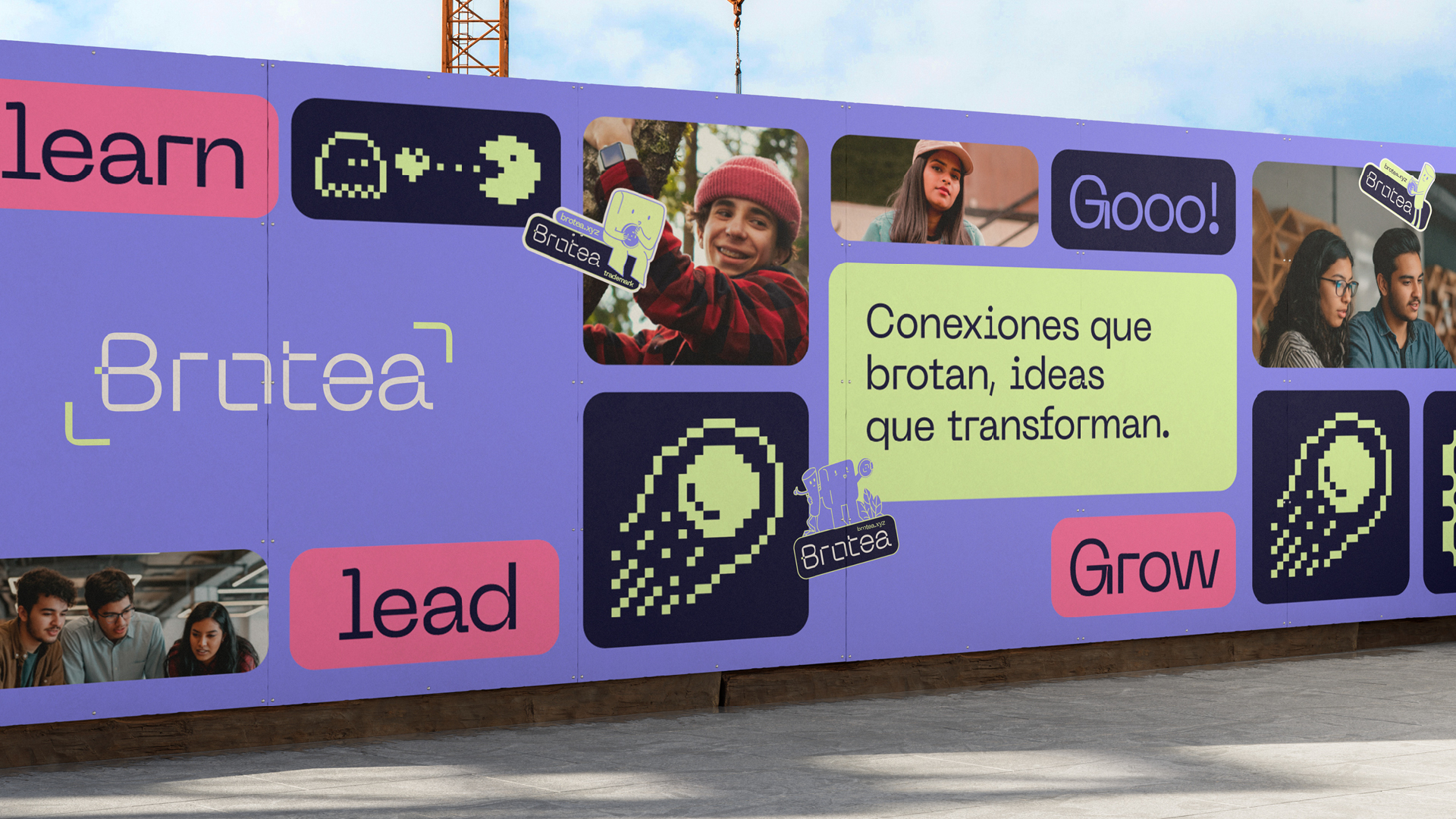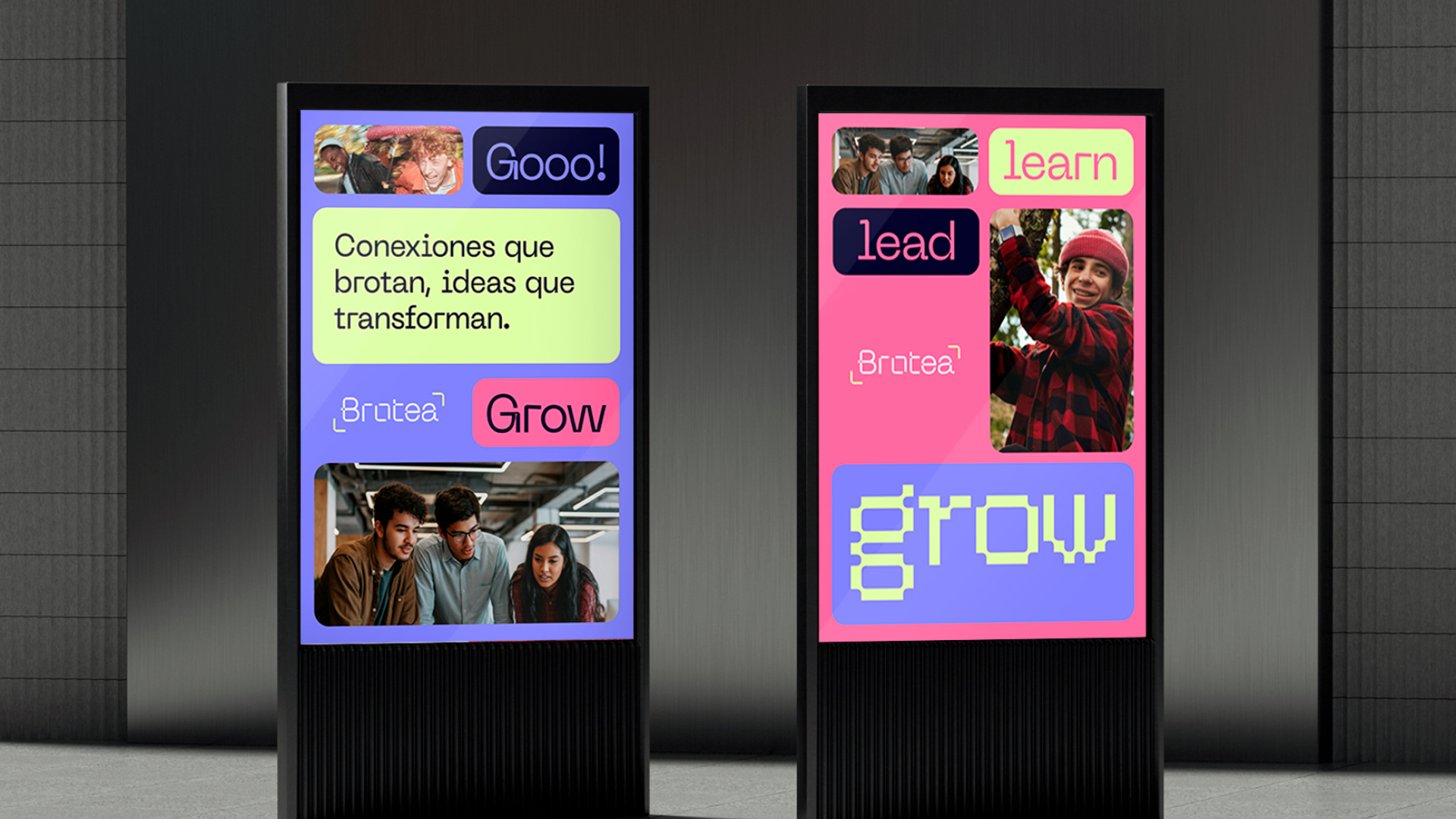 El tono de comunicación de Brotea es claro, accesible y motivador, alineado con su misión de acompañar a programadores y emprendedores en su desarrollo dentro del ecosistema Web3. COncepto que se hace tangible en el claim «Learn, Grow, Lead», reforzando refuerza cada una de estas etapas.