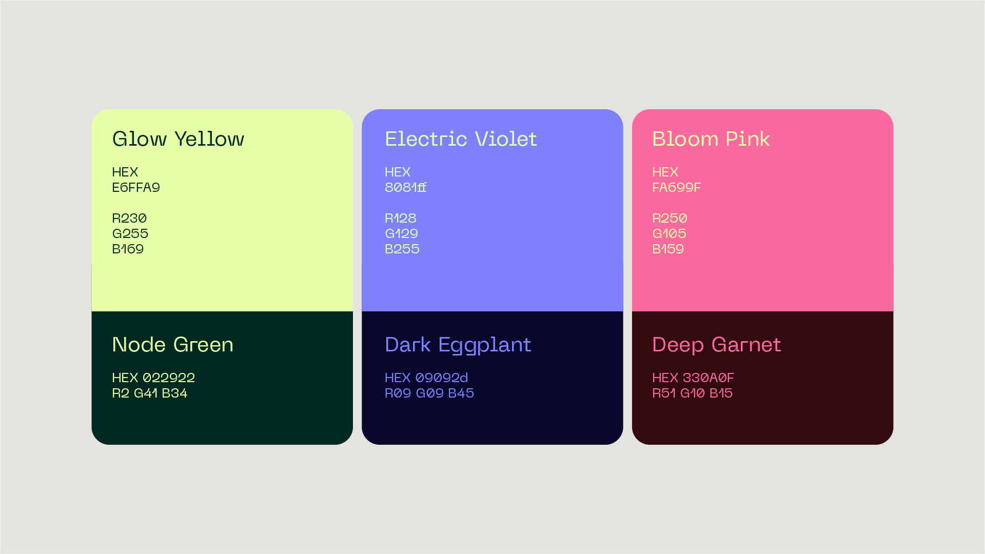 Logotipo: Una tipografía tech con vaciados de píxeles y ángulos rectos, que refuerza la conexión con Web3 sin perder accesibilidad.