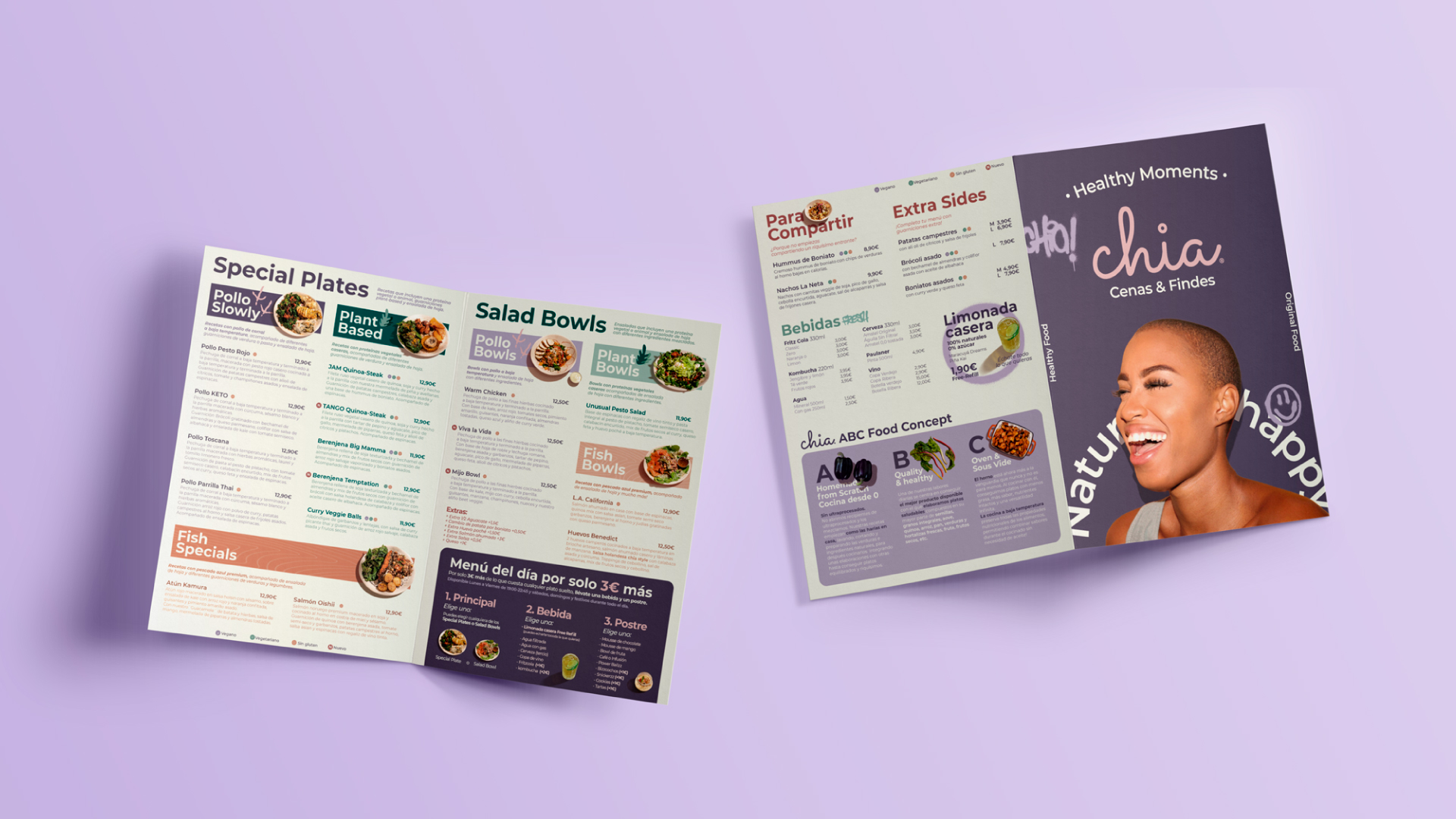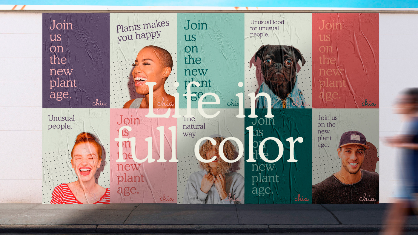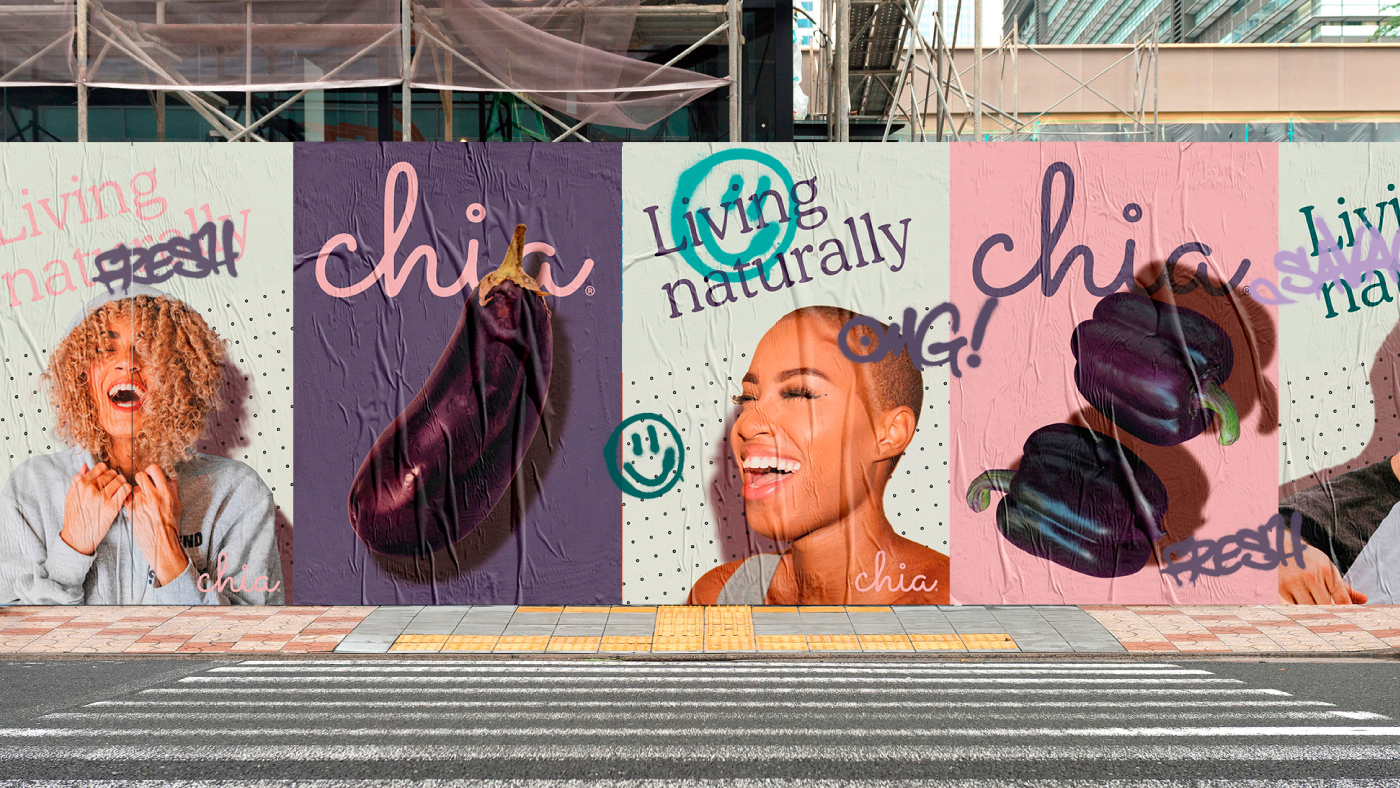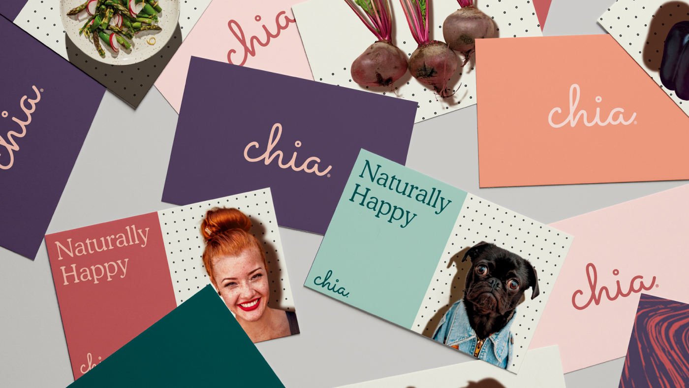 La marca CHIA es una oda a la «naturalidad» y la «felicidad». Desarrollamos una identidad verbal que gira entorno al Key «Naturally happy».