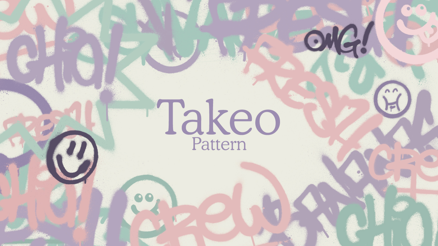 El «takeo pattern» refleja el carácter urbano de la marca en forma de graffiti.