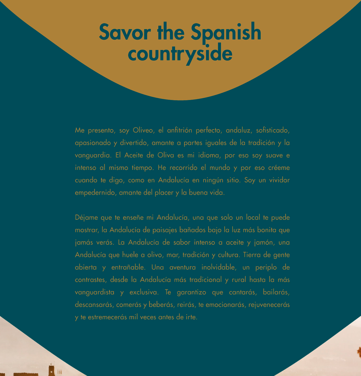 El manifiesto de Oliveo se convirtió en su voz, describiendo la tierra, la cultura y la tradición como solo un local puede transmitir. Combinamos esto con imágenes soleadas y cálidas de los lugares emblemáticos de Andalucía, capturando la esencia de esta tierra única.